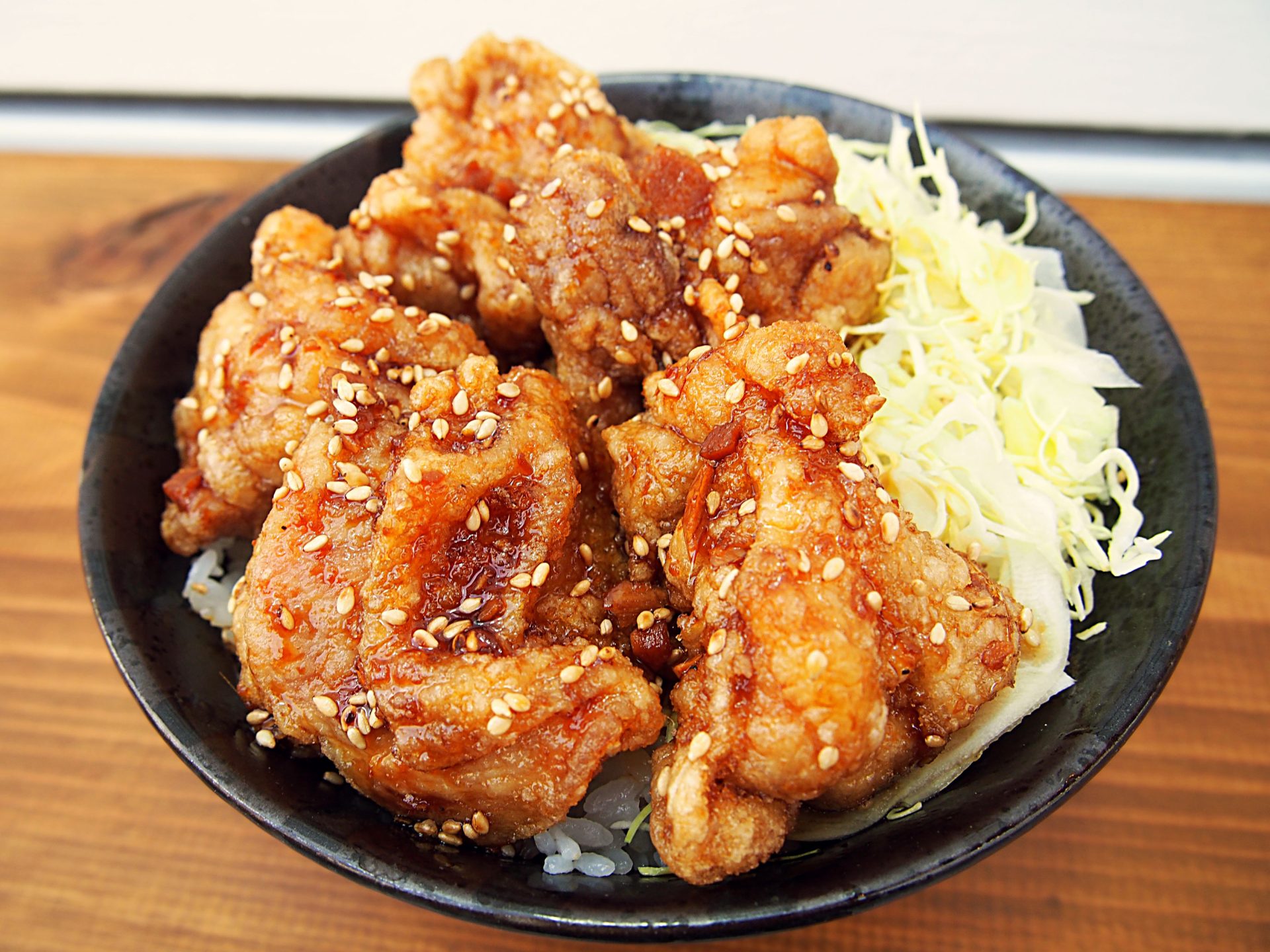 大人気たれから丼に、当店特製ピリ辛ソースが加わったたれから丼。